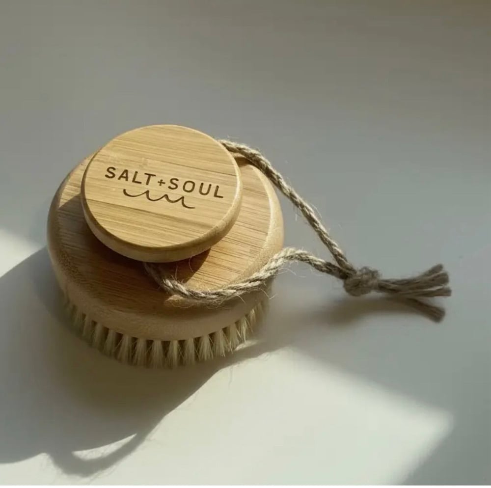 Crafted from 100% natural, plastic-free materials by Salt and Soul Skincare, this body brush features a smooth bamboo handle and firm sisal plant bristles—designed to support a more intentional, embodied approach to daily self-care.