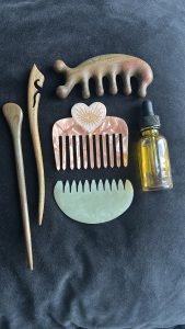 I also use this Gua Sha Comb from Yao Secret Shop Wooden Gua Sha Comb for Hair | Yao Secret